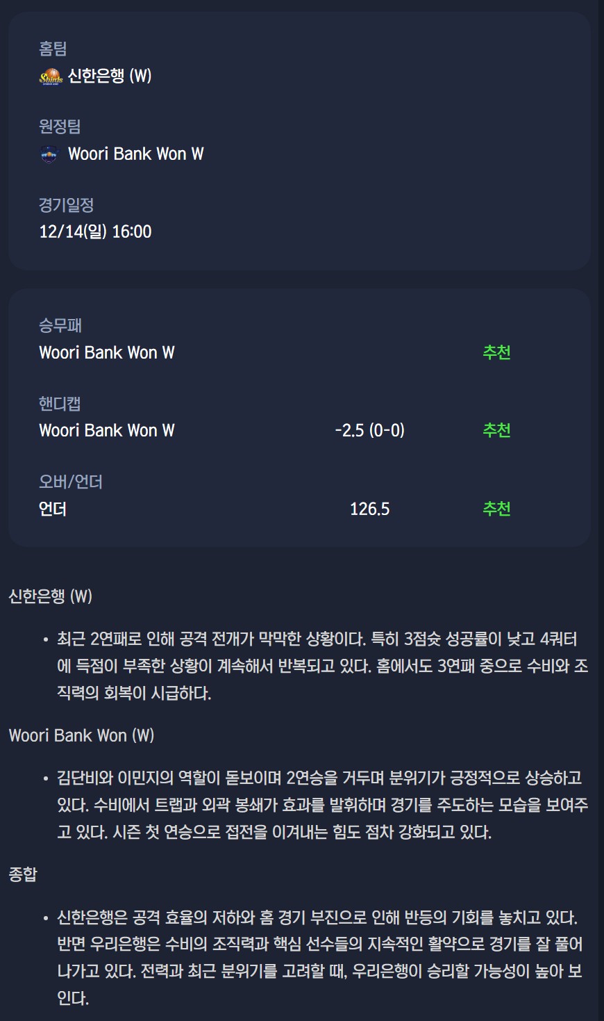 2025년 12월 14일 WKBL 분석자료 / 여자농구분석