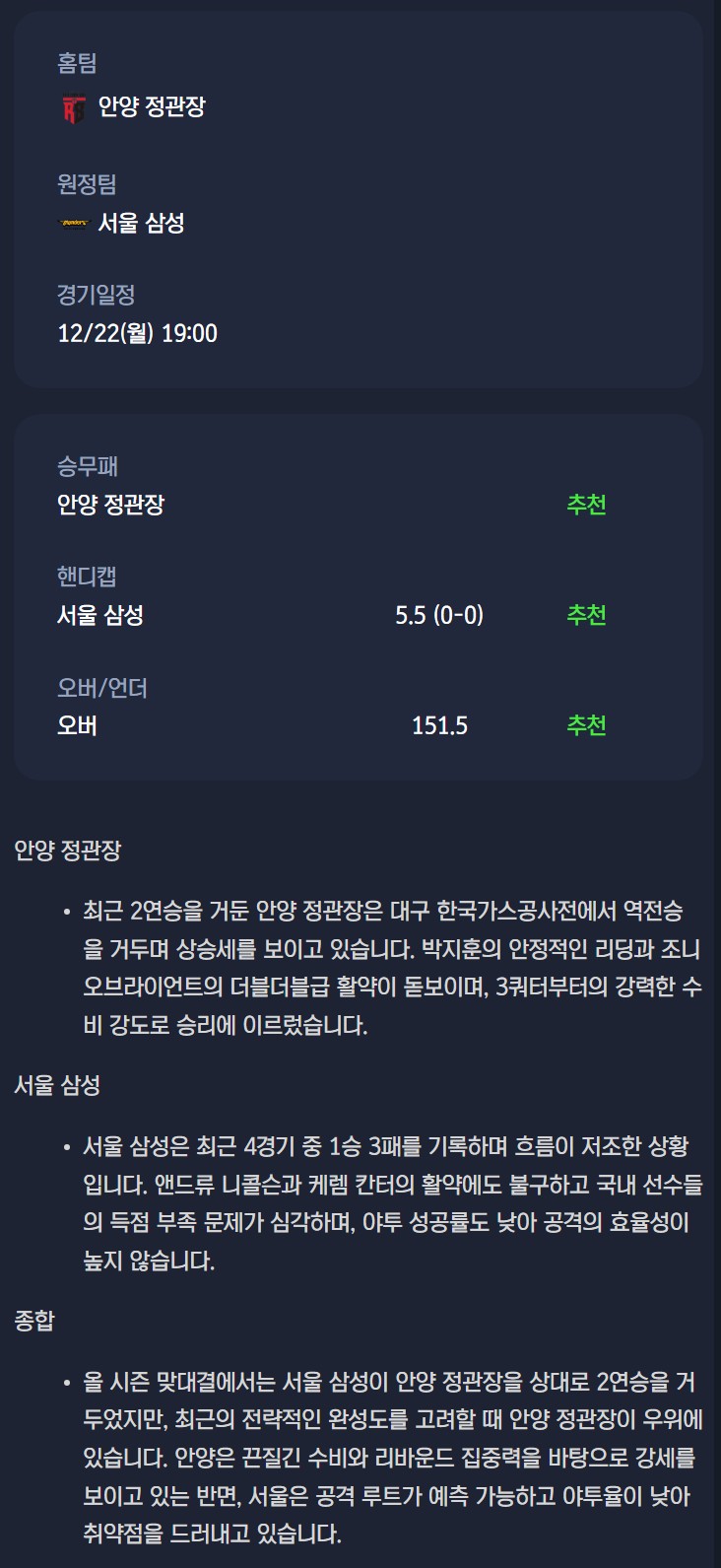 2025년 12월 22일 KBL 분석자료 / 남자농구분석