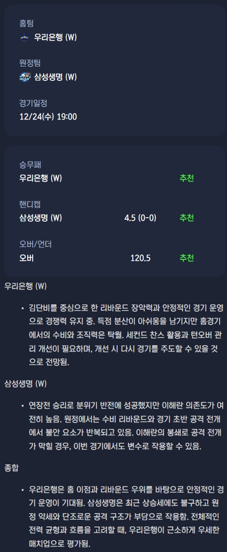 2025년 12월 24일 WKBL 분석자료 / 여자농구분석