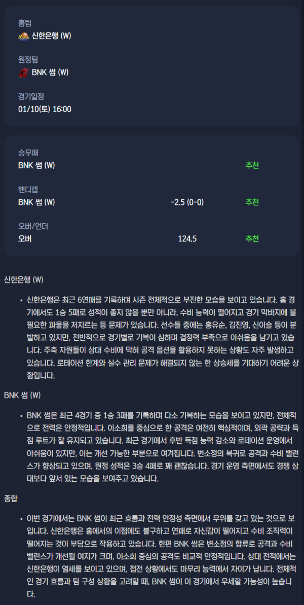 2026년 01월 10일 WKBL 분석자료 / 여자농구분석