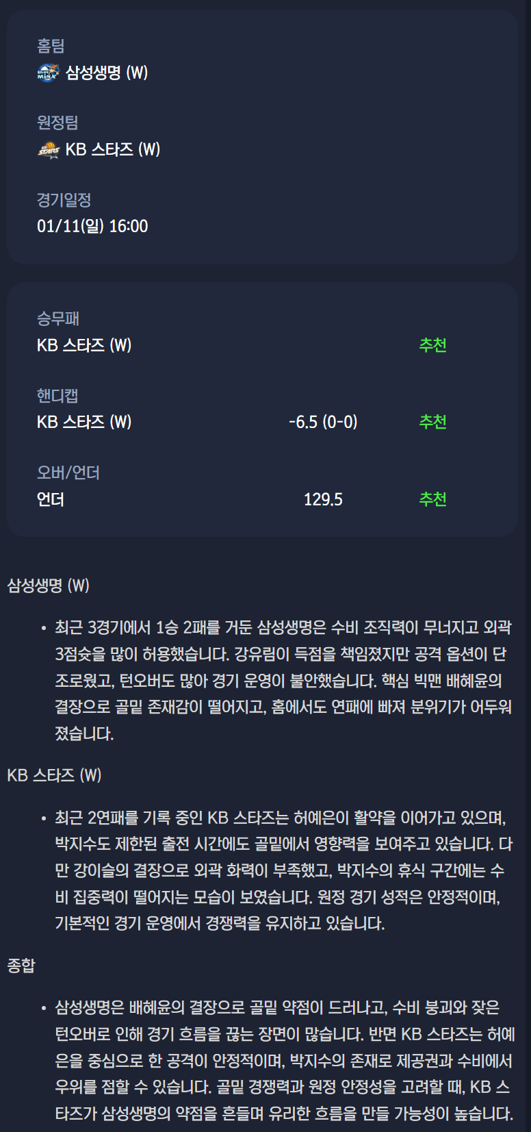 2026년 01월 11일 WKBL 분석자료 / 여자농구분석