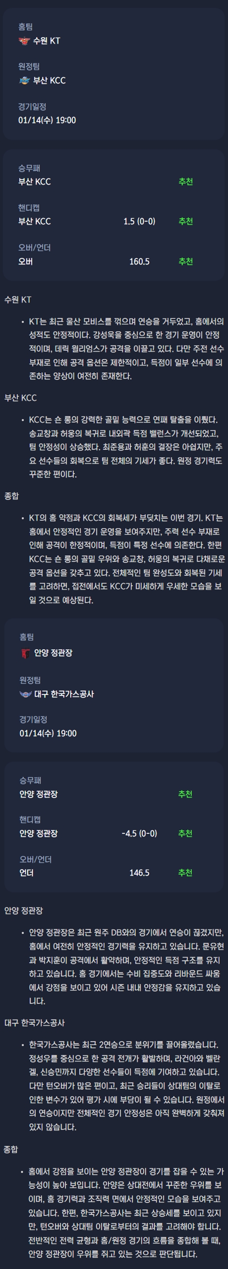 2026년 01월 14일 KBL 분석자료 / 남자농구분석