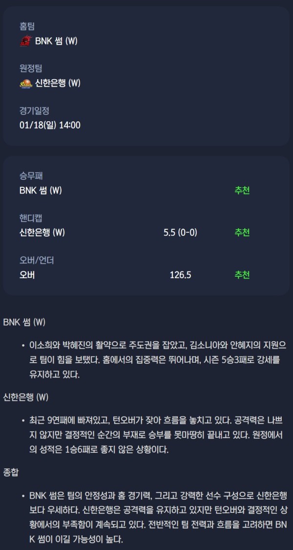 BNK 썸 vs 신한은행