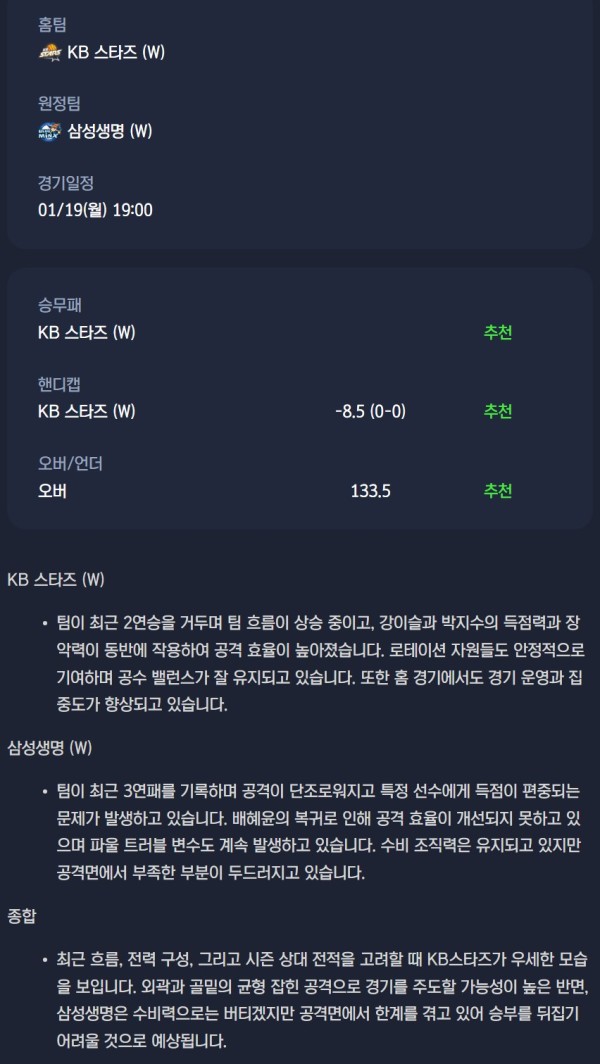 2026년 01월 19일 WKBL 분석자료 / 여자농구분석