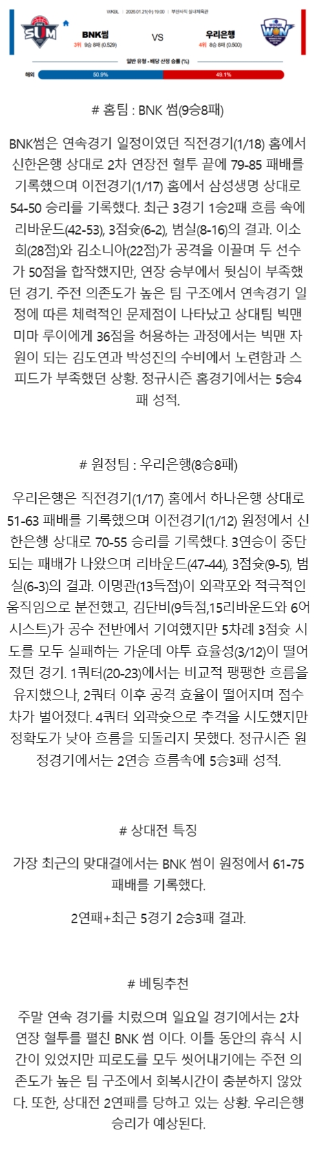 2026년 01월 21일 WKBL 분석자료 / 여자농구분석
