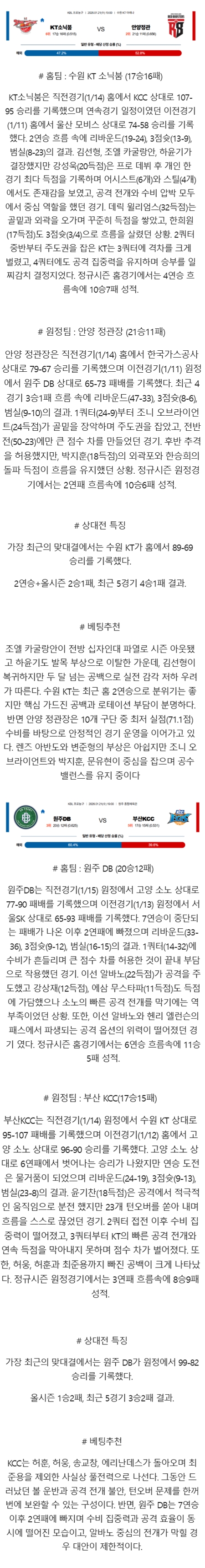 2026년 01월 15일 KBL 분석자료 / 남자농구분석
