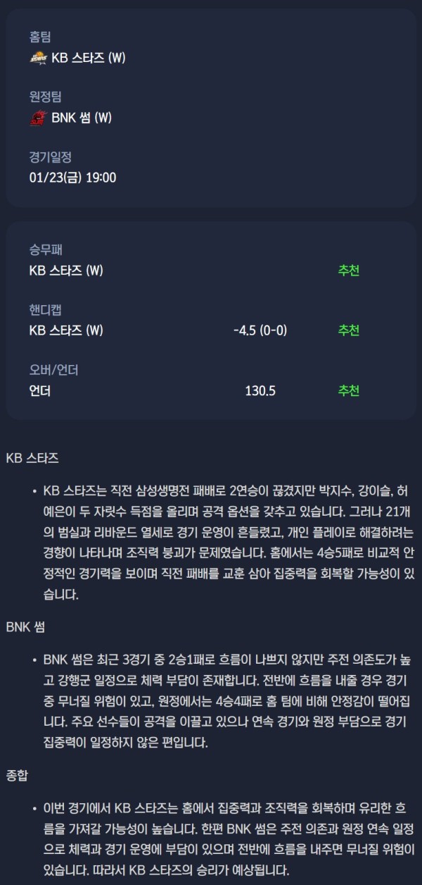 KB 스타즈 vs BNK 썸