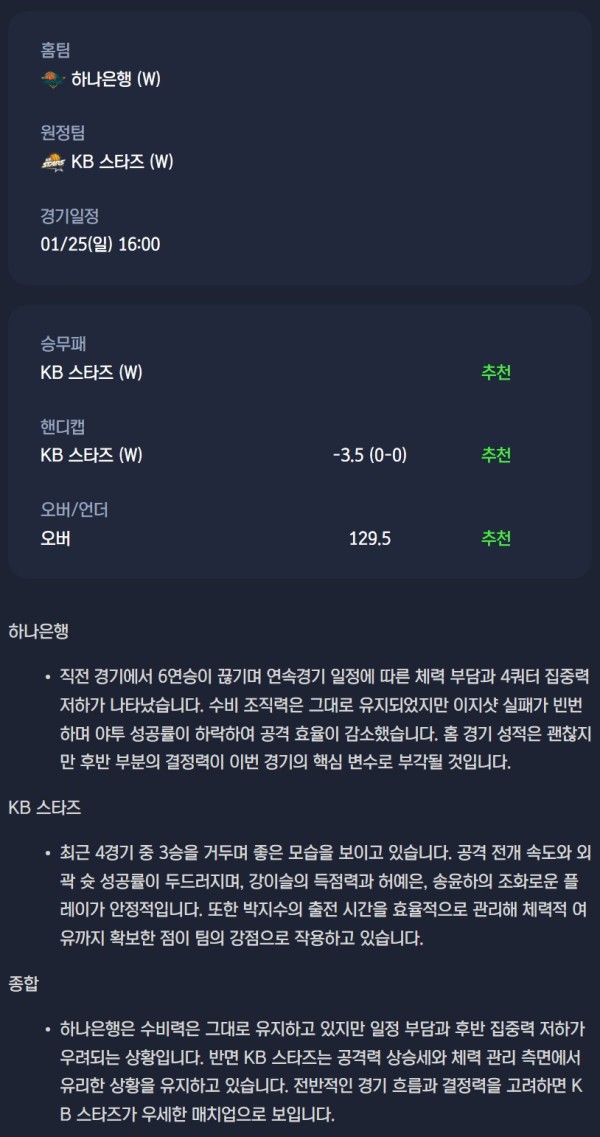2026년 01월 25일 WKBL 분석자료 / 여자농구분석