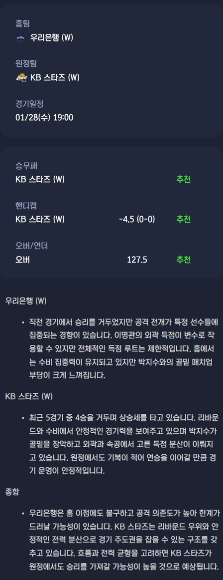 2026년 01월 28일 KBL 분석자료 / 여자농구분석