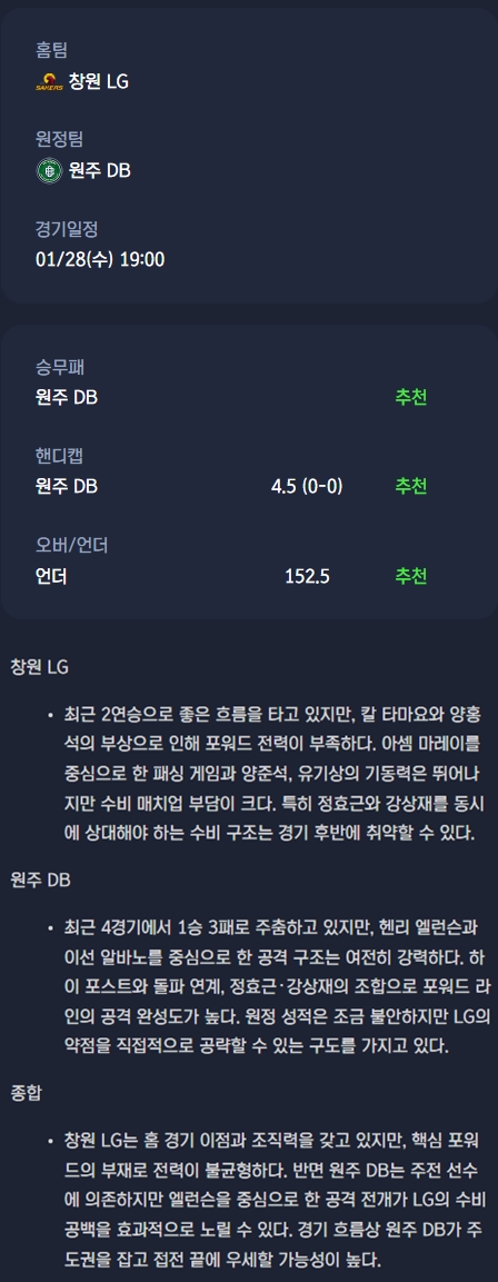 창원 LG 세이커스 vs 원주 DB 프로미