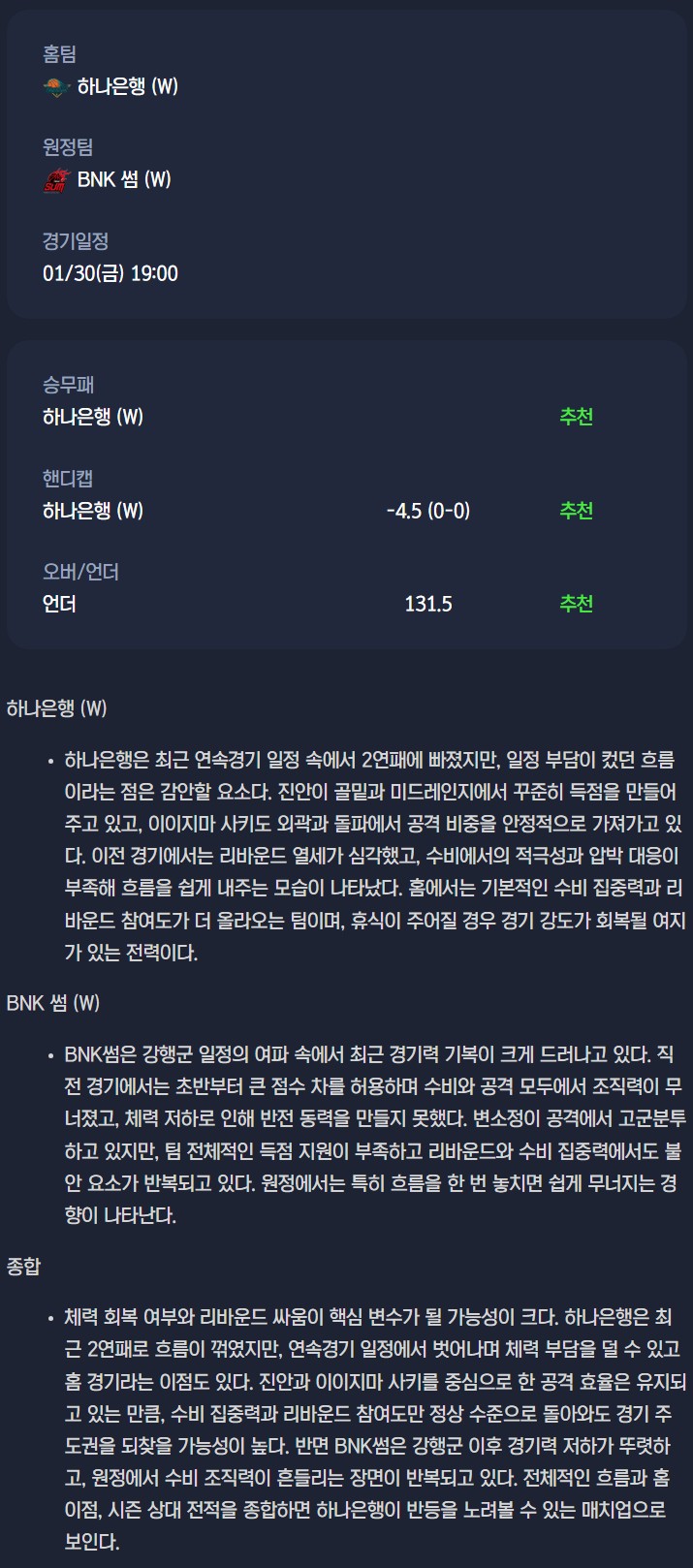 하나은행 vs BNK 썸