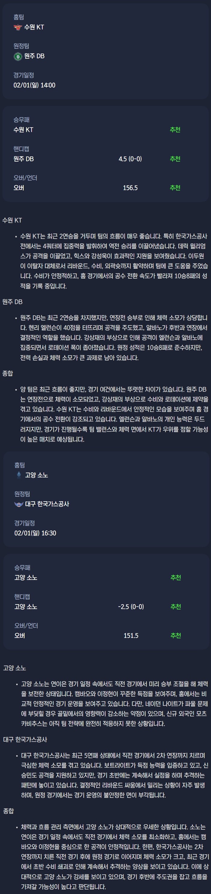 2026년 02월 01일 KBL 분석자료 / 남자농구분석