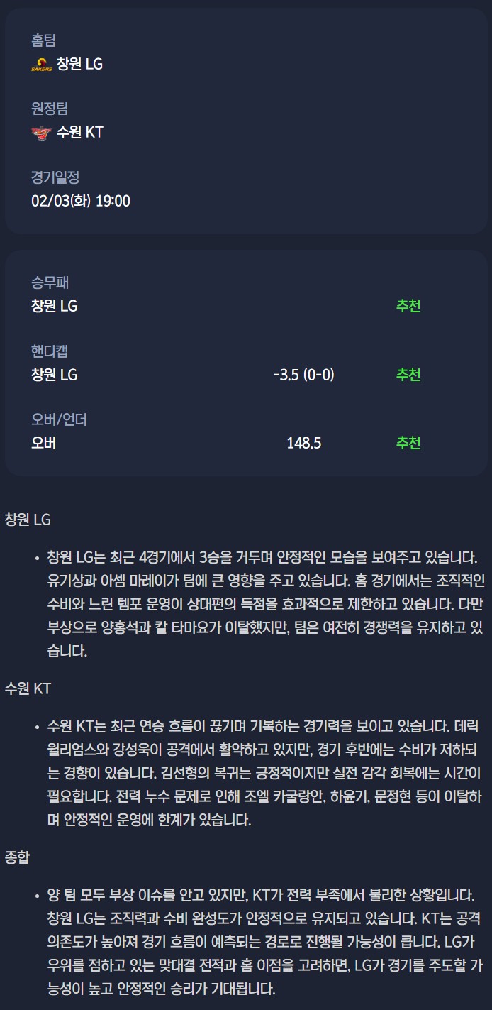 2026년 02월 03일 KBL 분석자료 / 남자농구분석