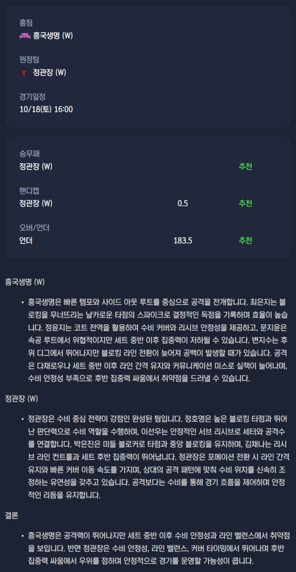2025-10-18 [V-League - Women] 분석자료 스포츠 무료중계 / 스포츠 중계