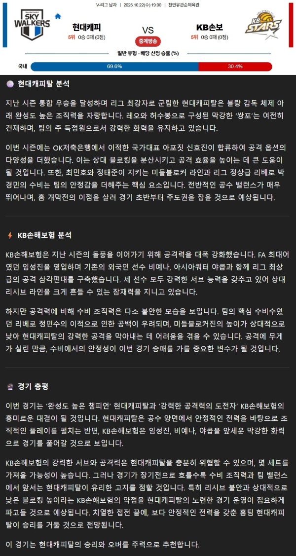 2025-10-22 V-리그 남자배구 분석자료 스포츠 무료중계 / 스포츠 중계