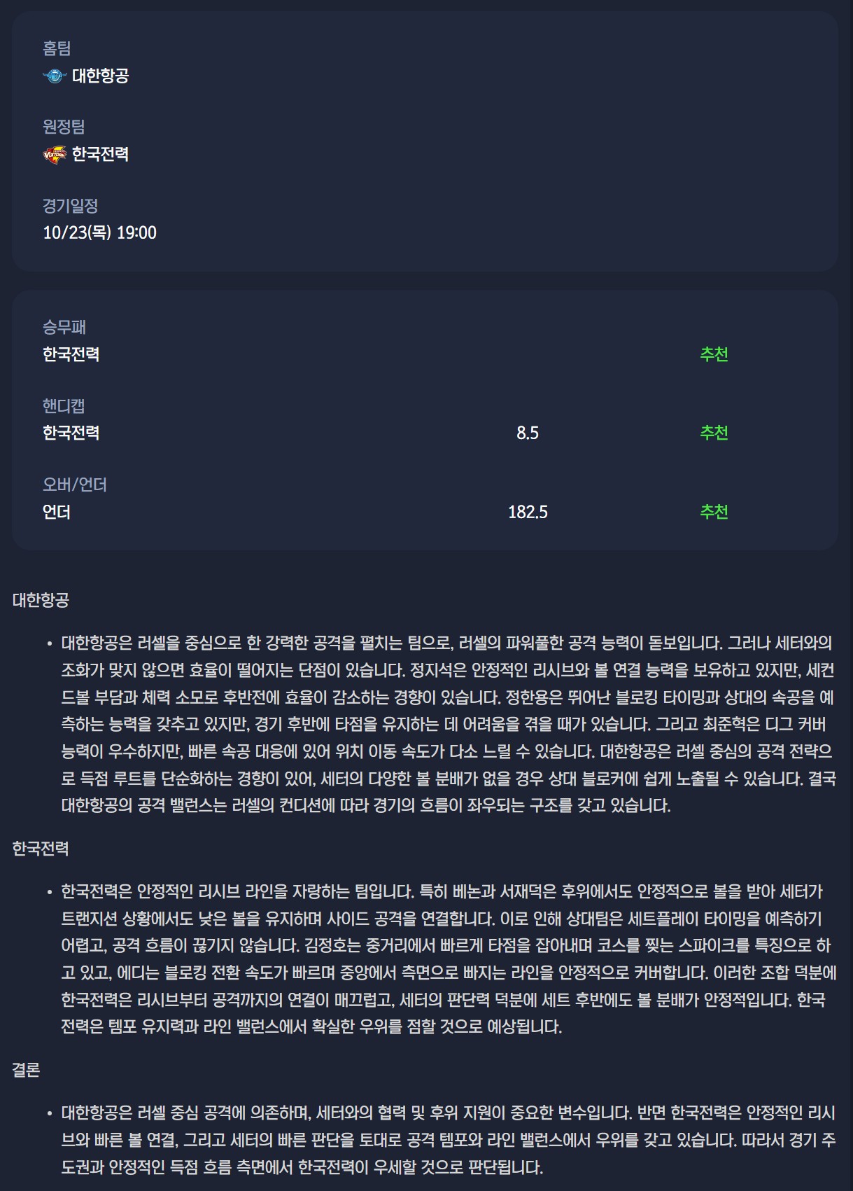 2025-10-23 V-리그 남자배구 분석자료 스포츠 무료중계 / 스포츠 중계