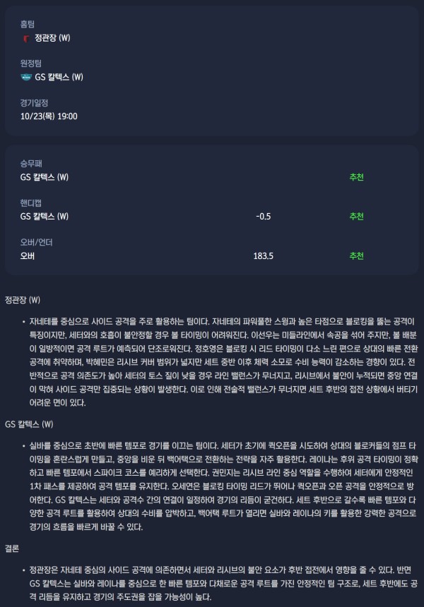 2025-10-23 V-리그 여자배구 분석자료 스포츠 무료중계 / 스포츠 중계