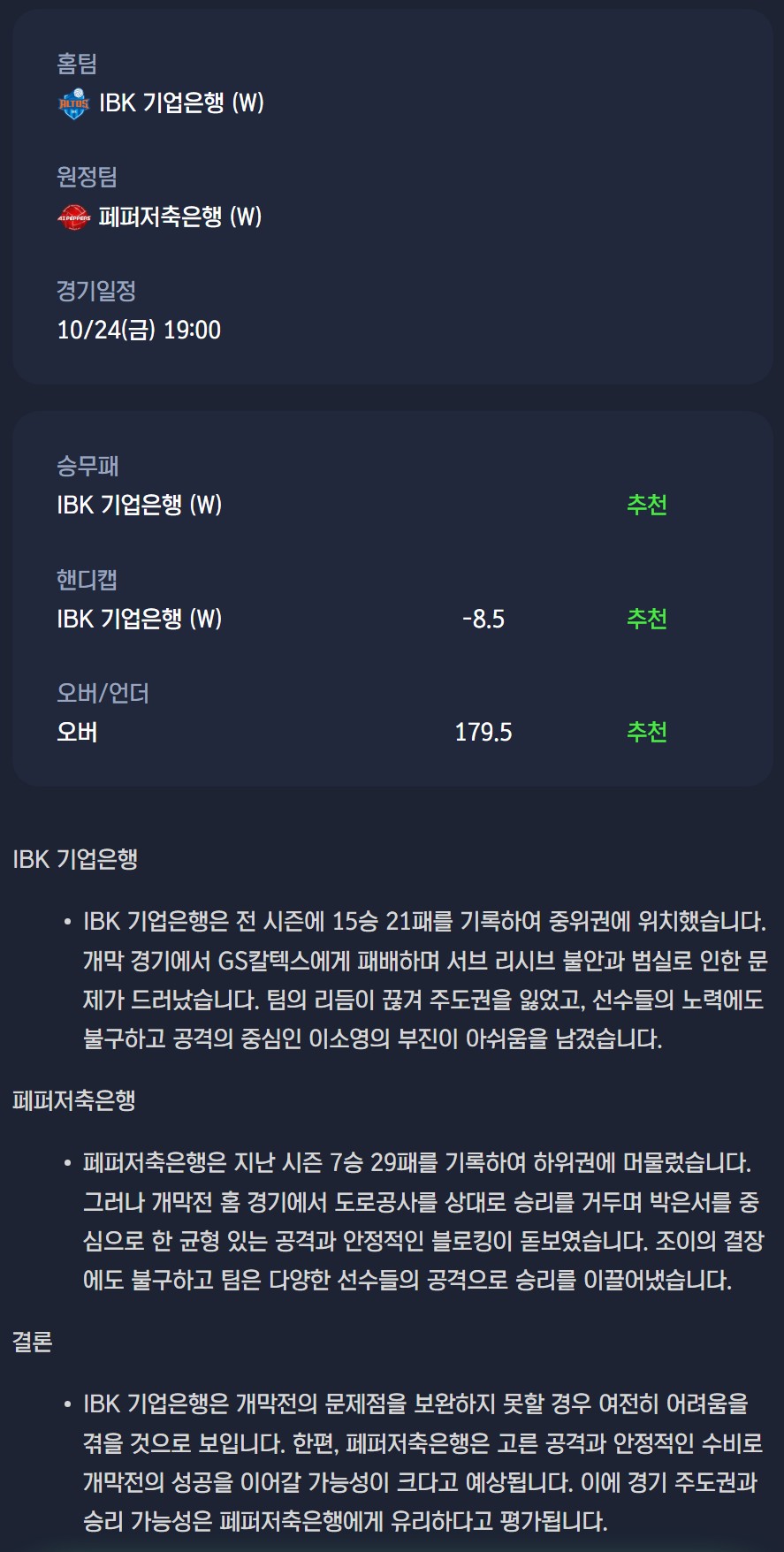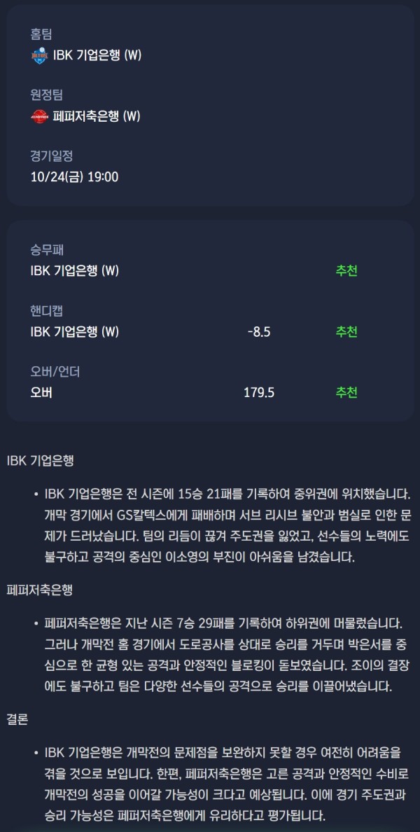 2025-10-24 V-리그 여자배구 분석자료 스포츠 무료중계 / 스포츠 중계