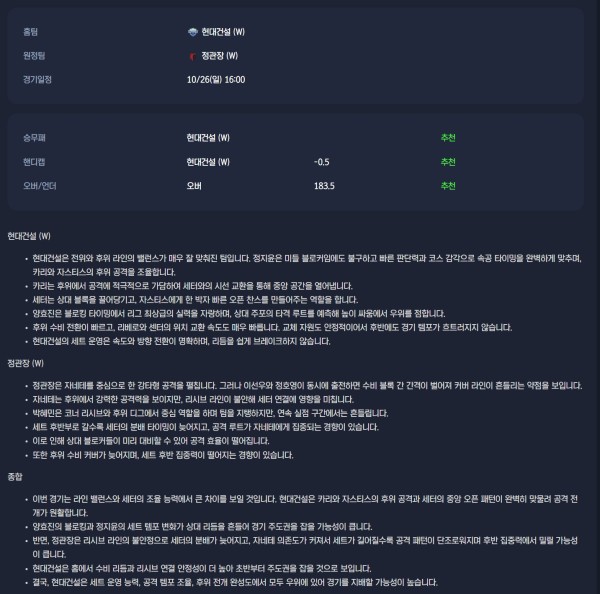 2025-10-26 V-리그 여자배구 분석자료 스포츠 무료중계 / 스포츠 중계