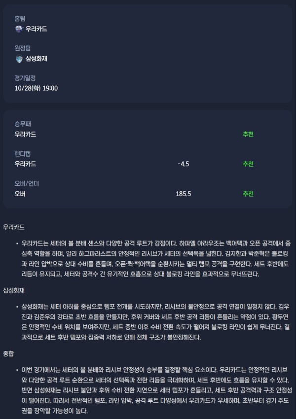 2025-10-28 V-리그 남자배구 분석자료 스포츠 무료중계 / 스포츠 중계