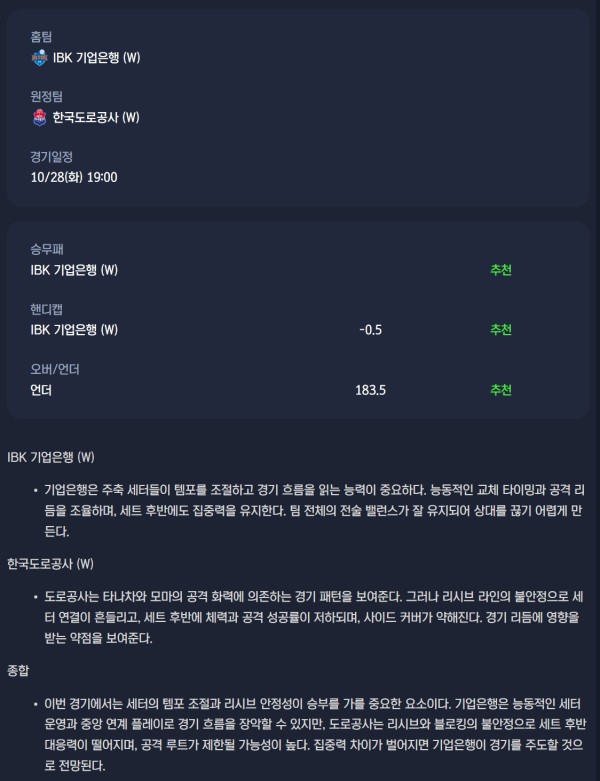 2025-10-28 V-리그 여자배구 분석자료 스포츠 무료중계 / 스포츠 중계