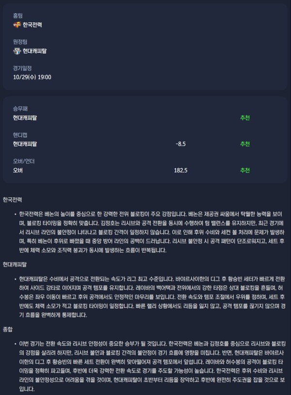 2025-10-29 V-리그 남자배구 분석자료 스포츠 무료중계 / 스포츠 중계