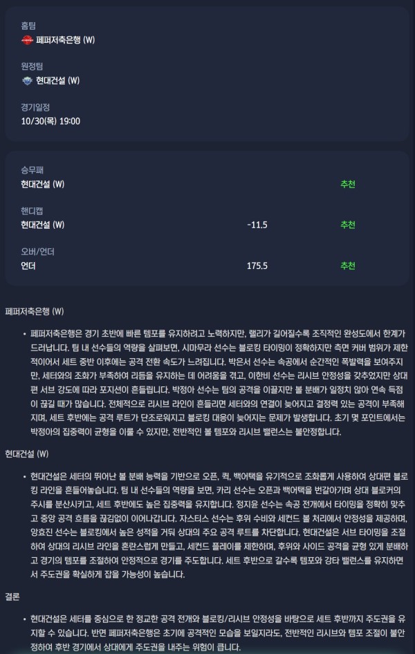 2025-10-30 V-리그 여자배구 분석자료 스포츠 무료중계 / 스포츠 중계