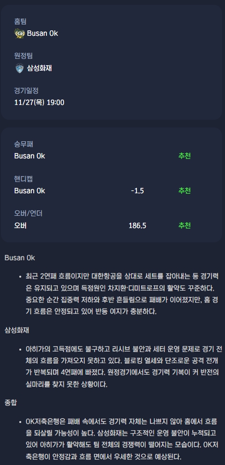2025년 11월 27일 우리카드 우리WON 배구단 현대캐피탈 스카이워커스 배구단 / V리그 남자배구분석
