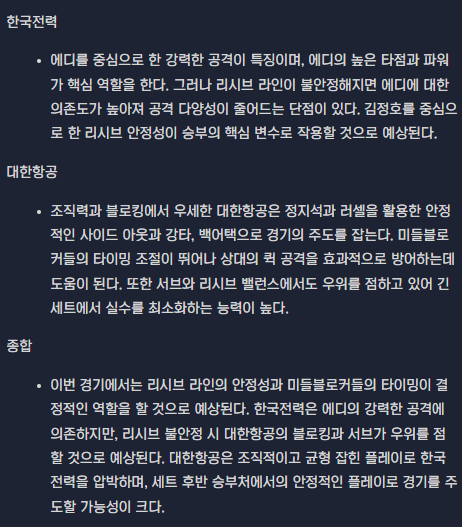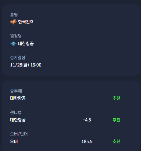 2025년 11월 28일 한국전력 빅스톰 배구단 대한항공 점보스 배구단 분석자료 / V리그 남자배구분석