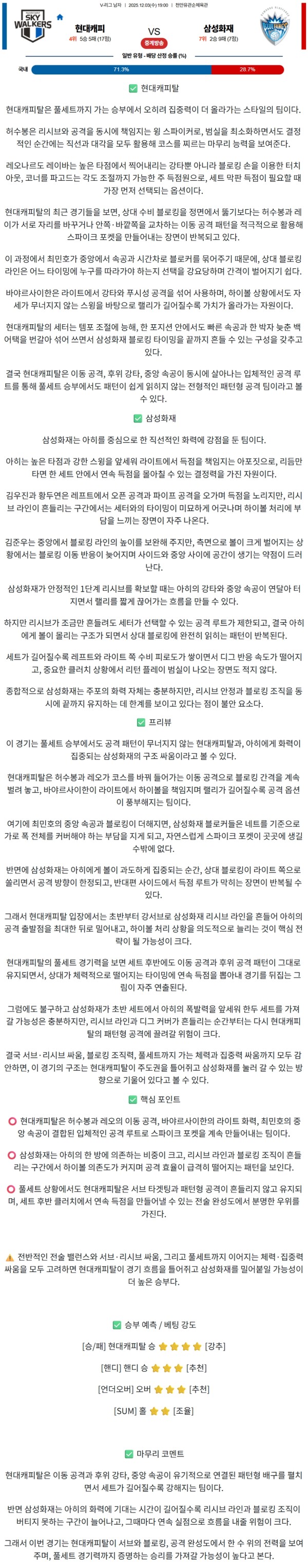 2025년 12월 03일 현대캐피탈 스카이워커스 배구단 삼성화재 블루팡스 배구단 / V리그 남자배구분석