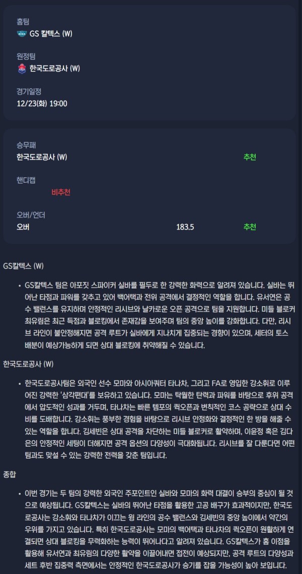 2025년 12월 23일 GS칼텍스 KIXX 배구단 한국도로공사 하이패스 배구단 / V리그 여자배구분석