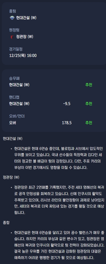 2025년 12월 25일 현대건설 힐스테이트 배구단 정관장 레드스파크스 분석자료 / V리그 여자배구분석
