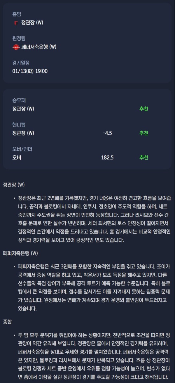 2026년 01월 13일 V리그 분석자료 / 여자배구분석