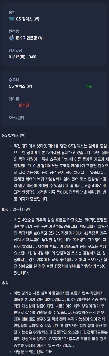 2026년 01월 15일 V리그 분석자료 / 여자배구분석