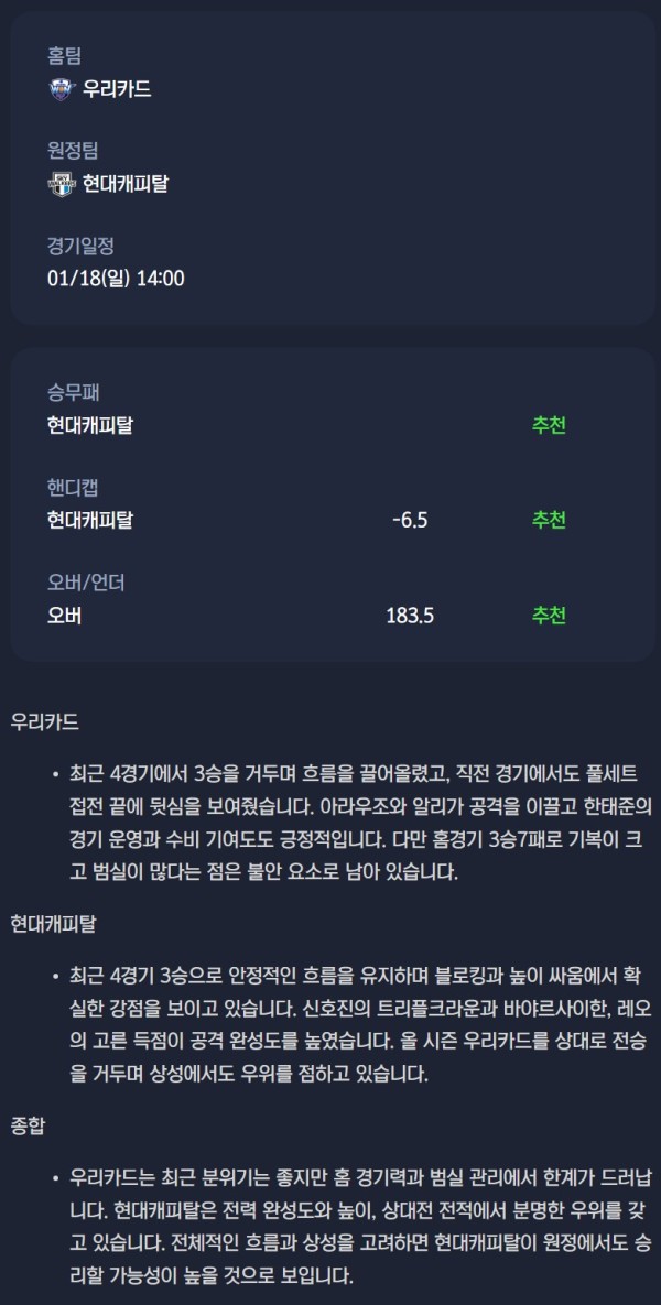 2026년 01월 11일 IBK기업은행 알토스 배구단 현대건설 힐스테이트 배구단 / V라그 여자배구분석