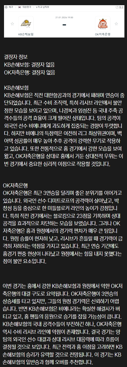 2026년 01월 21일 V리그 분석자료 / 남자배구분석