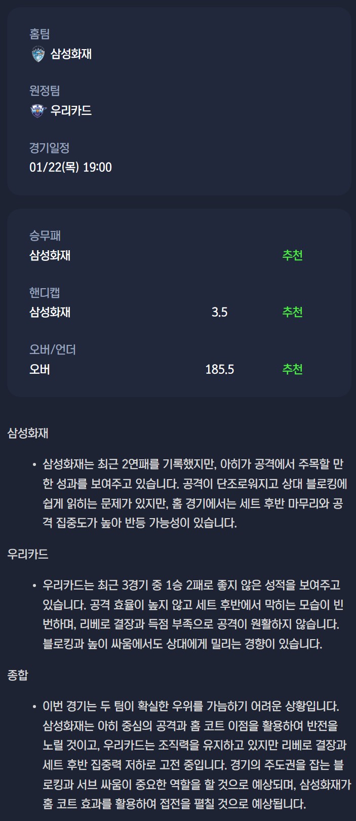 2026년 01월 22일 V리그 분석자료 / 남자배구분석