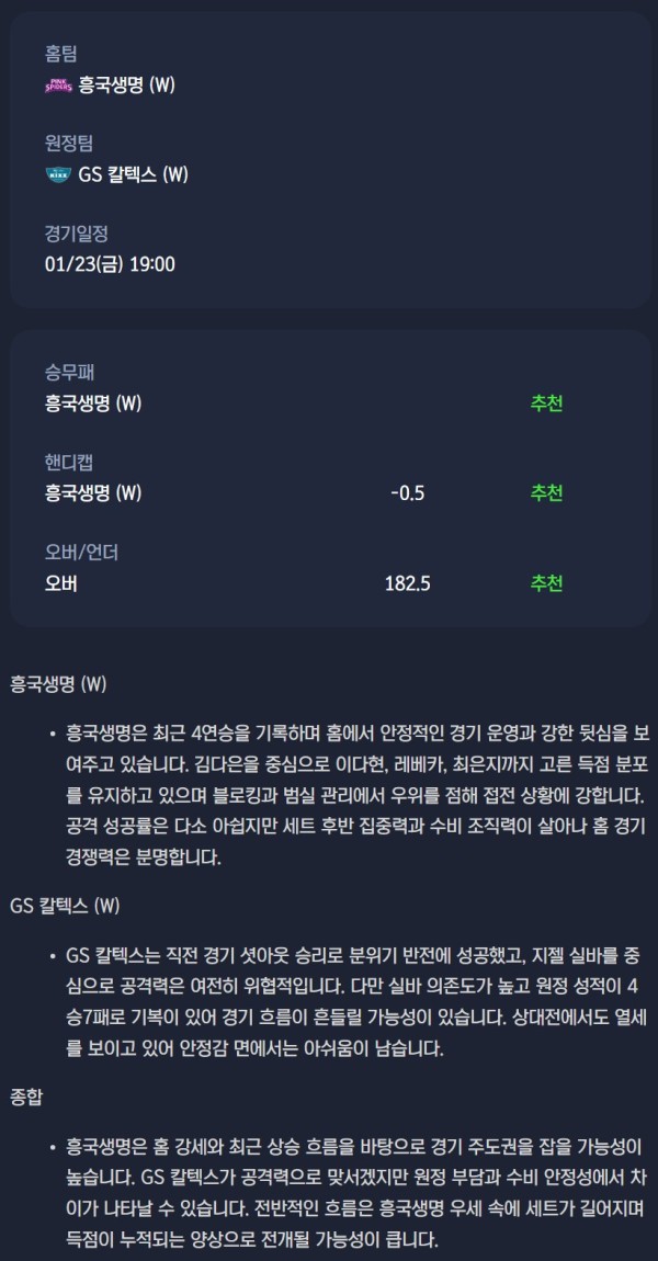 2026년 01월 23일 V리그 분석자료 / 여자배구분석
