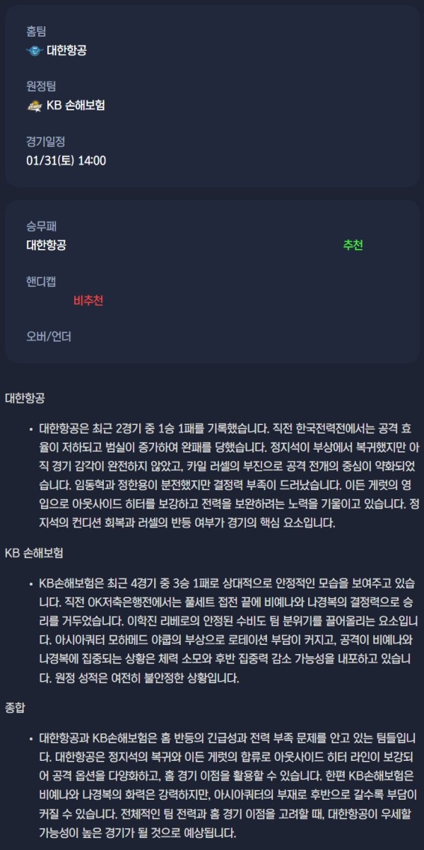 2026년 01월 31일 V리그 분석자료 / 남자배구분석